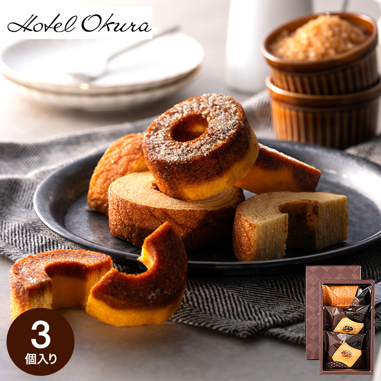 ●内容量:バームクーヘン×3個(発酵バター×2個、ブリュレ×1個)