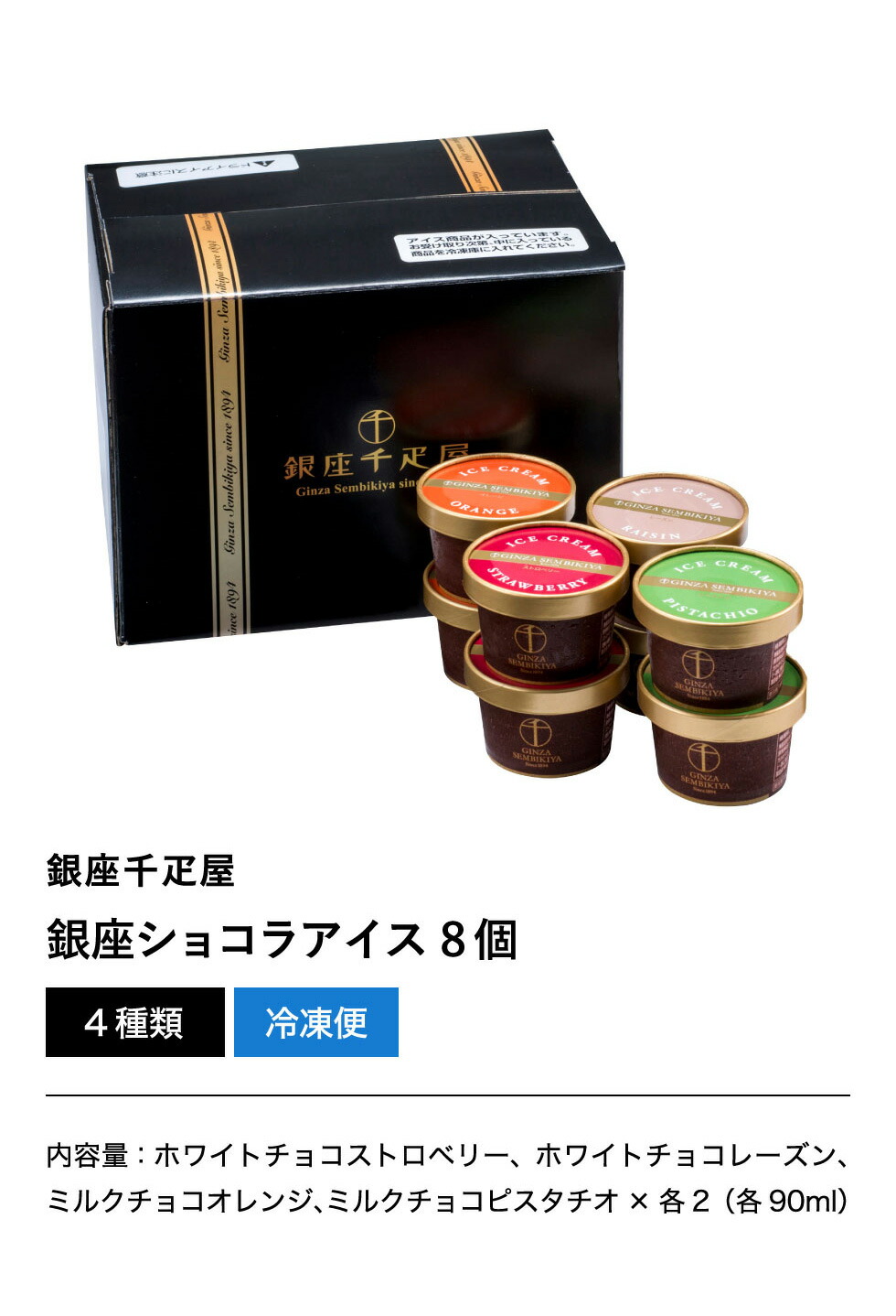 ●内容量:90ml×8個(ホワイトチョコストロベリー、ホワイトチョコレーズン、ミルクチョコオレンジ、ミルクチョコピスタチオ 各2個)