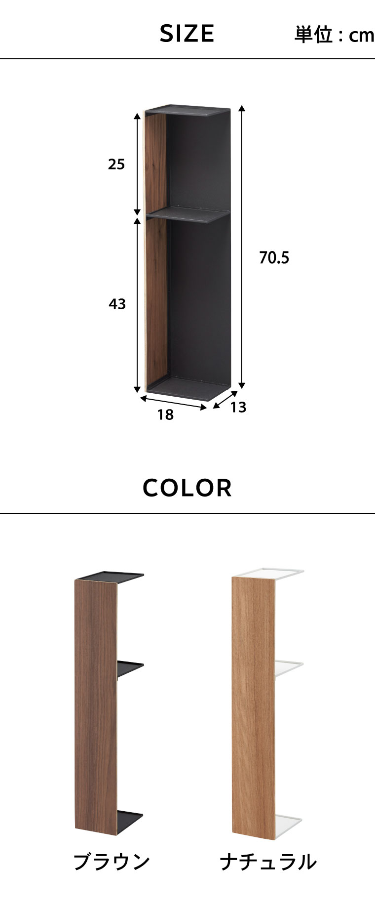 【商品サイズ】約18X13X70.5cm 【重量】(約)2.8kg 【素材・材質】本 体:スチール(粉体塗装)・天然木積層合板(ラッカー塗装) 【箱サイズ】(約)横19×奥行き14.5×高さ72cm ●JANコード:4903208031929 4903208031936