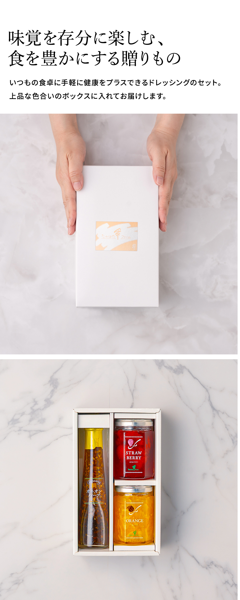 ●内容量:ジャム(ストロベリー・オレンジマーマレード)各145g×1、ドレッシング(オニオンハーブ)122ml×1