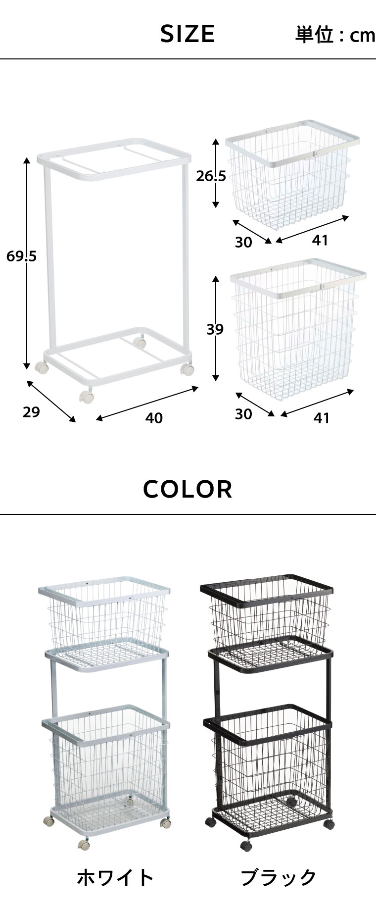 【商品サイズ】約40X29X93.5cm 【重量】(約)6.2kg 【素材・材質】【ワゴン】本体:スチール(粉体塗装) キャスター:ナイロン 六角レンチ・スパナ 【バスケット】本体:スチール(ユニクロメッキ+粉体塗装) 【箱サイズ】(約)横50×奥行き33×高さ66cm ●JANコード:4903208033510 4903208033527