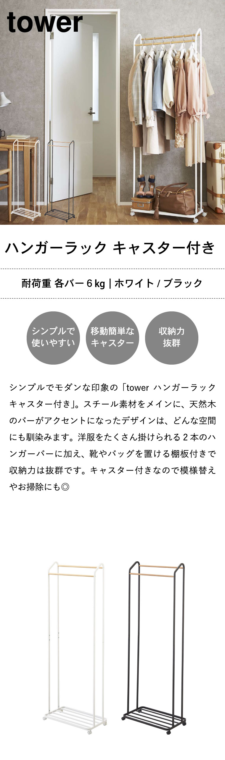 ハンガーラック tower タワー キャスター付き
