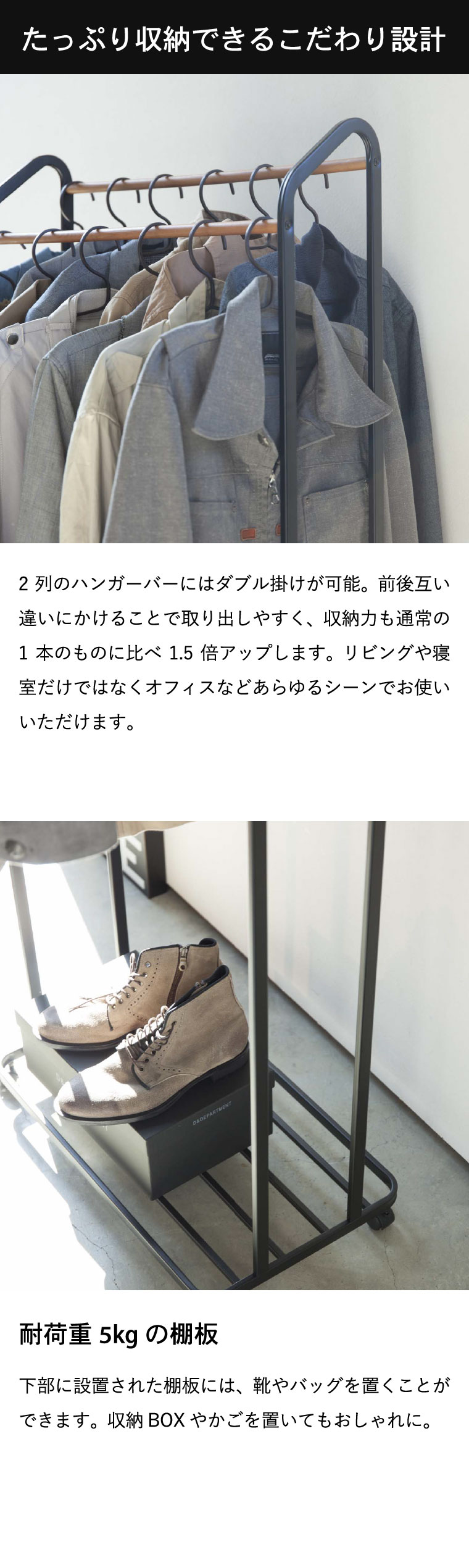【素材・材質】本体:スチール(粉体塗装) バー:天然木 キャスター:ナイロン