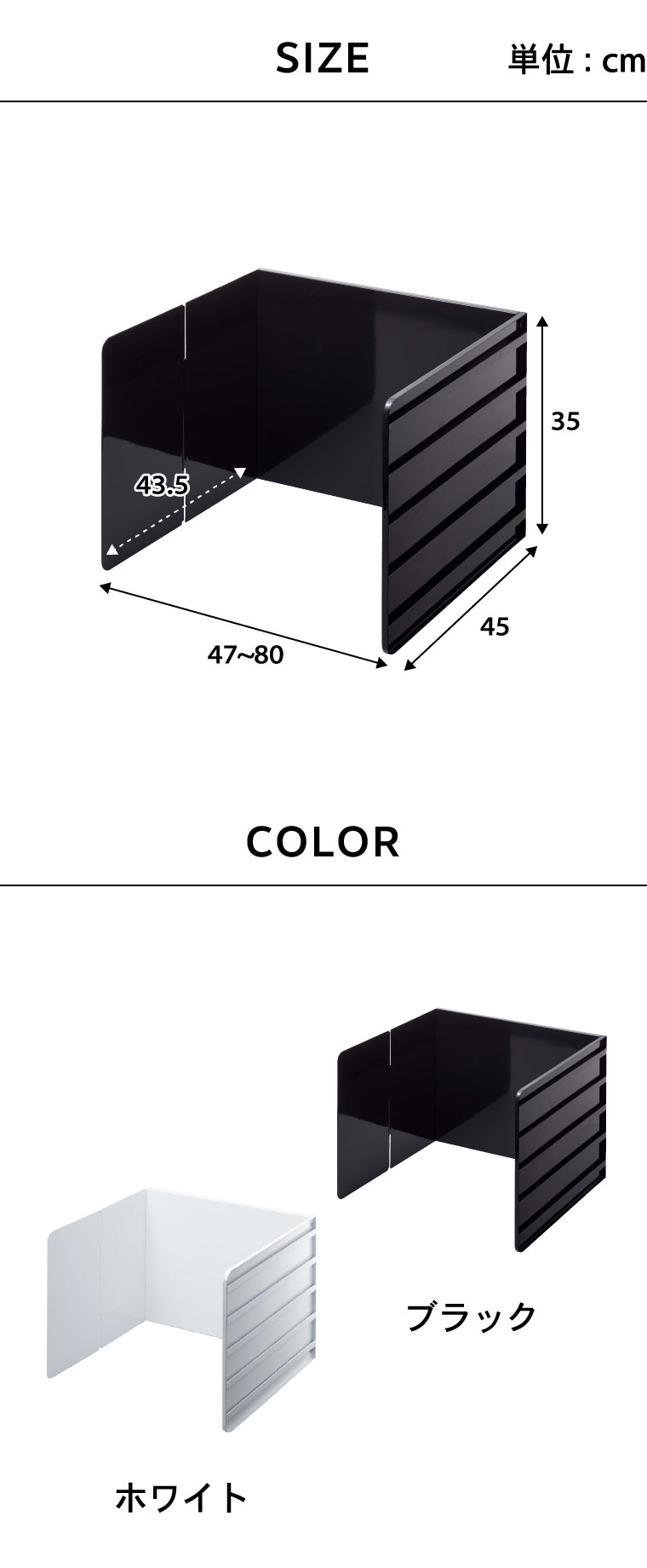 【商品サイズ】約47~80X45X35cm 【付属品】フック×5 緩衝材×6 クッション×4 【重量】(約)5.7kg 【素材・材質】本体:スチール(粉体塗装) 【箱サイズ】(約)横36×奥行き6.5×高さ47cm ●JANコード:4903208049740 4903208049757
