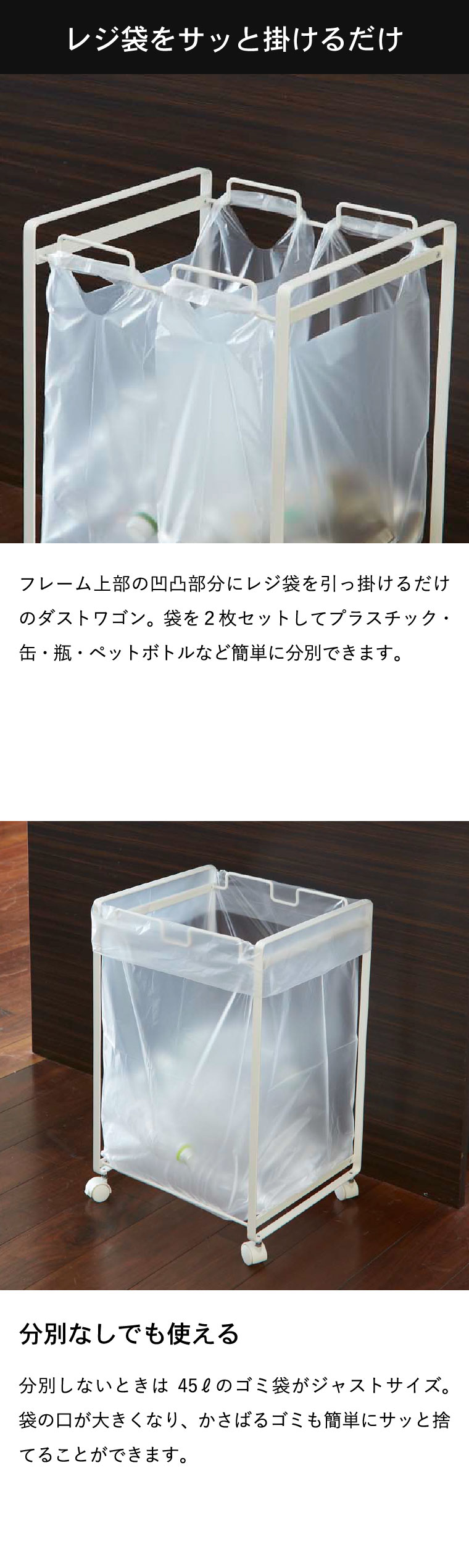 ●対応サイズ:ゴミ袋・コンビニやスーパーの袋・45Lのゴミ収集袋