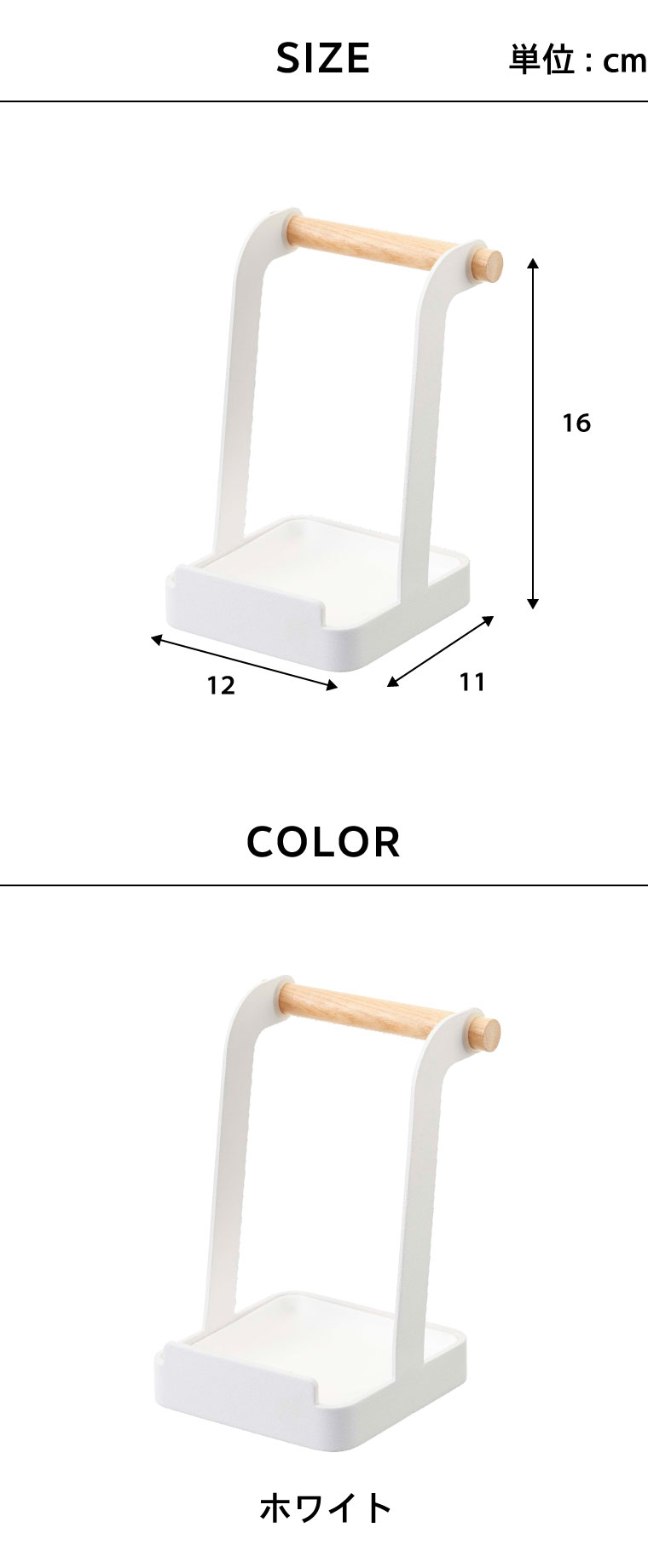 ●素材・材質:本体:スチール(ユニクロメッキ+粉体塗装) トレー:ポリプロピレン バー:天然木 ストッパー:シリコーン ●商品サイズ:(約)横12×奥行き11×高さ16cm ●商品重量:(約)360g ●型番:KT-PW T WH ●JANコード:4903208024235