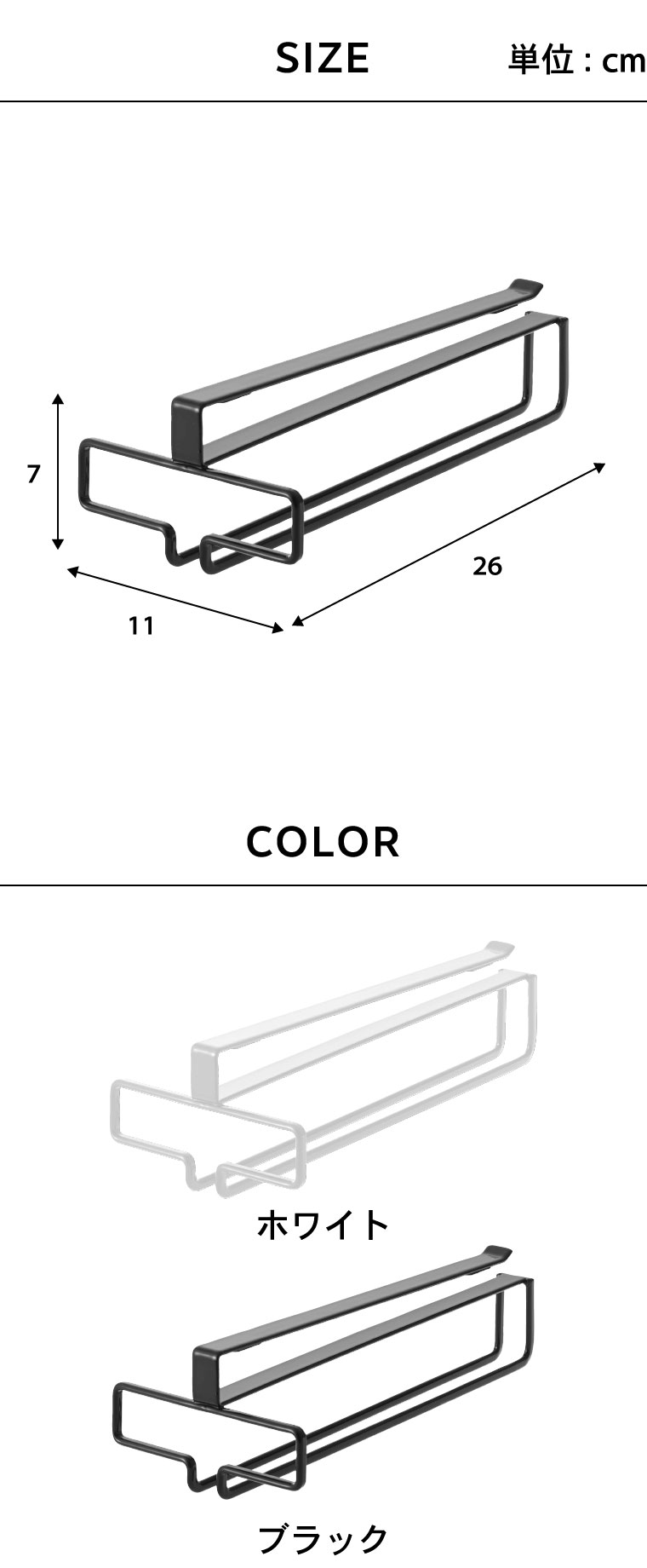 ●対応サイズ:棚板の厚さ約1.4~2cmまでに対応 ●素材・材質:本体:スチール(粉体塗装) ●商品サイズ:(約)横11×奥行き26×高さ7cm ●商品重量:(約)220g ●型番:KT-TW BJ WH/KT-TW BJ BK ●JANコード:4903208024624 4903208024631