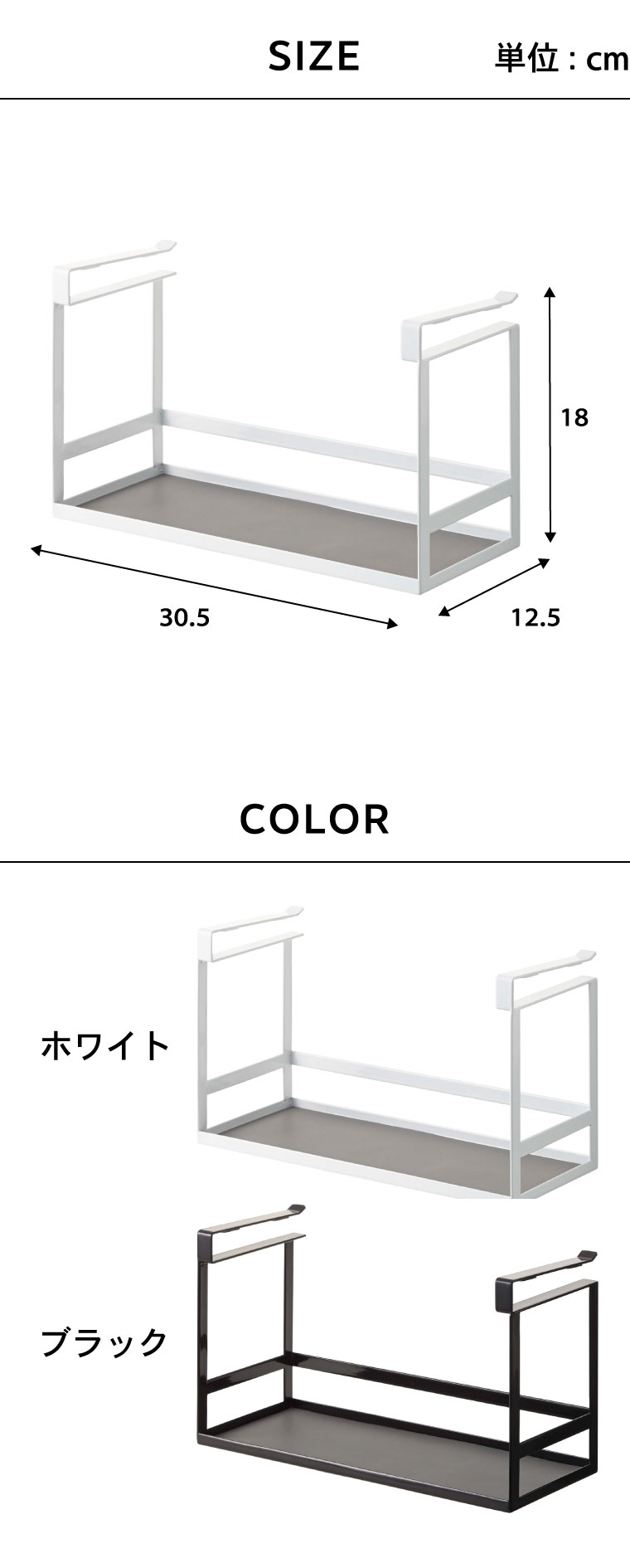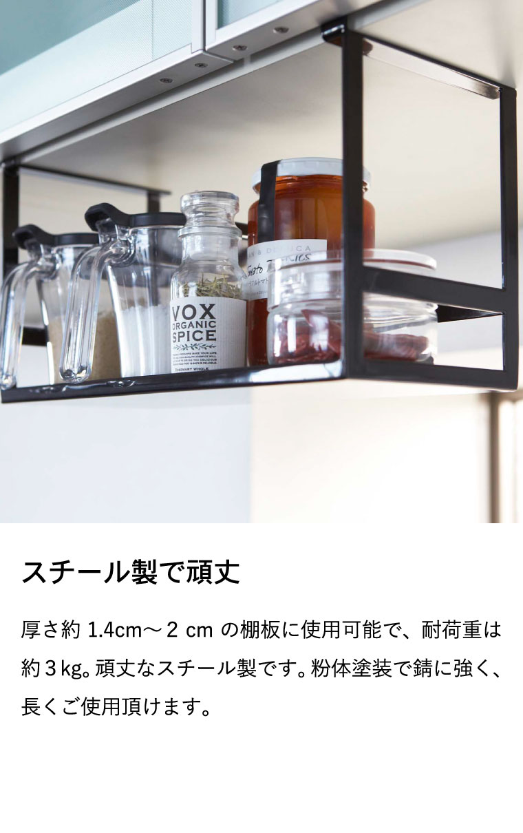 ●対応サイズ:棚板の厚さ約1.4~2cmまでに対応 ●素材・材質:本体:スチール(粉体塗装)マット:シリコーン ●商品サイズ:(約)横30.5×奥行き12.5×高さ18cm ●商品重量:(約)770g ●型番:KT-TW BL WH/KT-TW BL BK ●JANコード:4903208024662 4903208024679