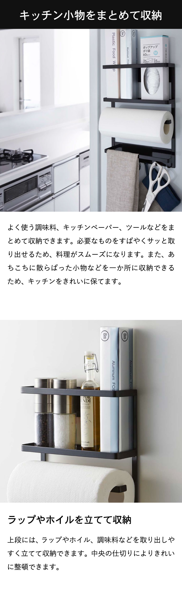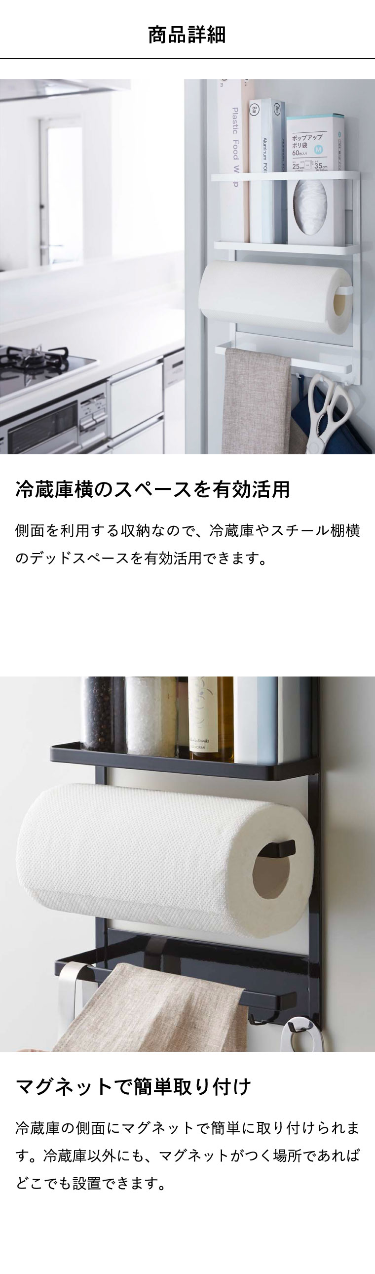 マグネット冷蔵庫サイドラック タワー 山崎実業 tower ホワイト/ブラック 2744 2745 タワーシリーズ マグネット
