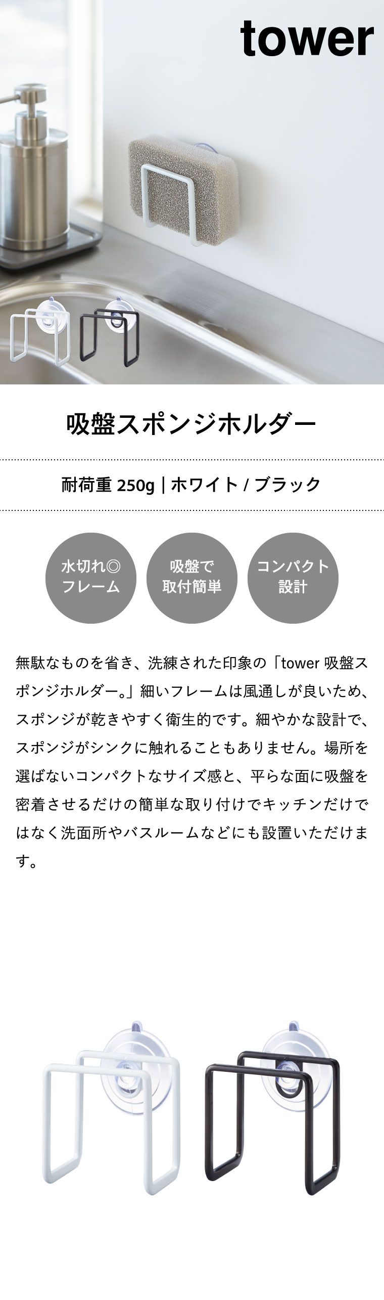 吸盤スポンジホルダー タワー 山崎実業 tower ホワイト/ブラック 2851 2852 タワーシリーズ