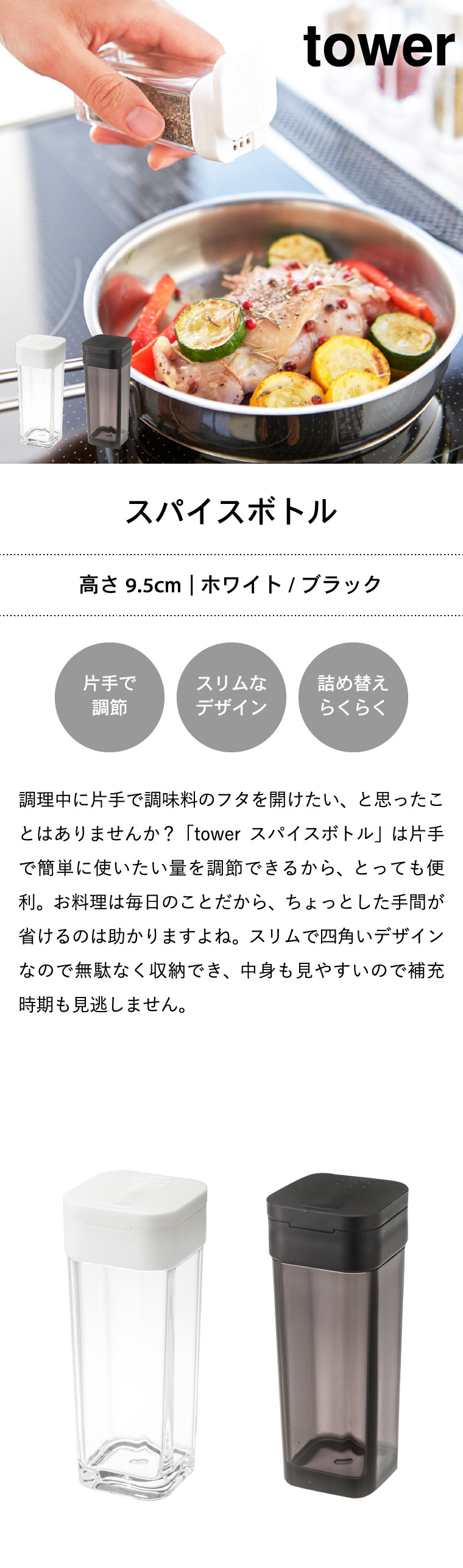 スパイスボトル タワー 山崎実業 tower ホワイト/ブラック 2863 2864 タワーシリーズ