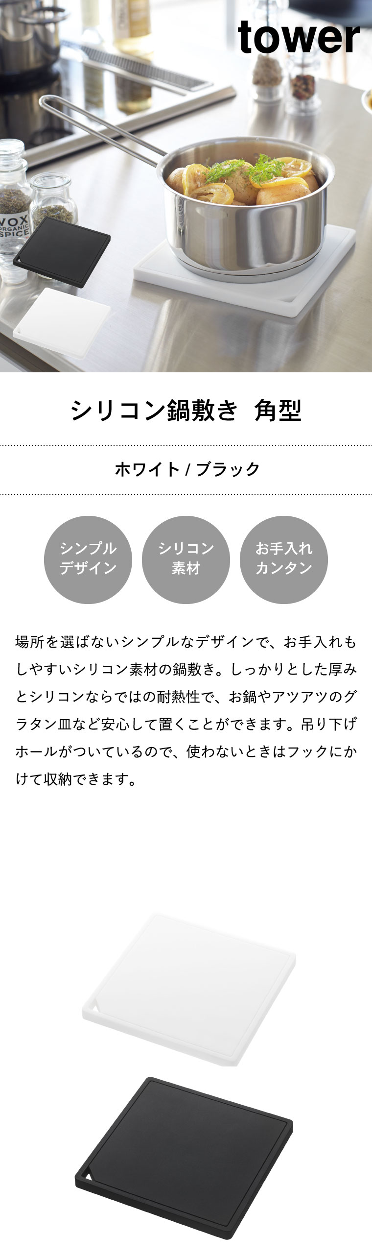 シリコン鍋敷き 角型 タワー 山崎実業 tower ホワイト/ブラック 2952 2953 タワーシリーズ