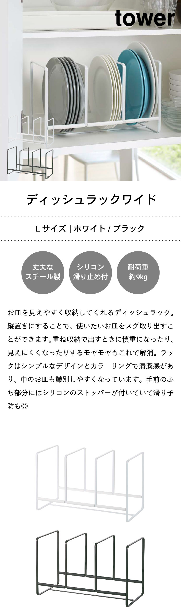 ディッシュラック ワイド L タワー 山崎実業 tower ホワイト/ブラック 2964 2965 タワーシリーズ