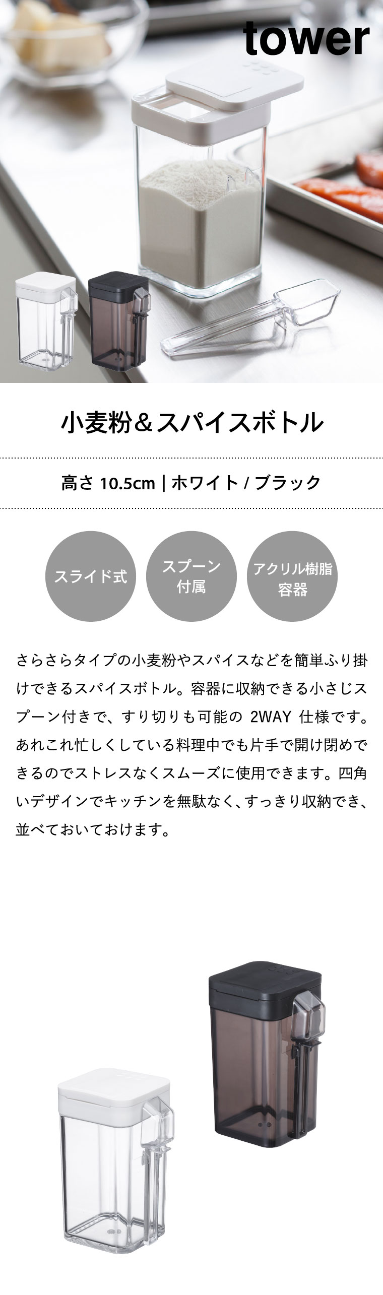 小麦粉&スパイスボトル タワー 山崎実業 tower ホワイト/ブラック 3234 3235 タワーシリーズ