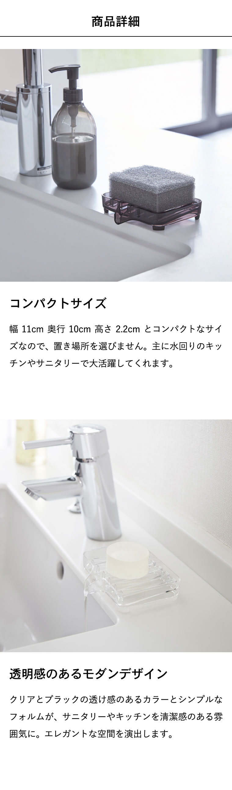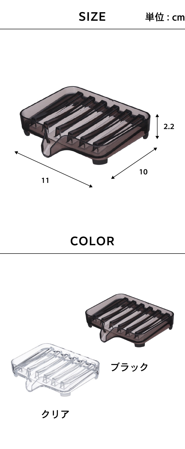 ●素材・材質:本体:アクリル樹脂 キャップ:シリコーン ●商品サイズ:(約)横11×奥行き10×高さ2.2cm ●商品重量:(約)85g ●型番:BT-BC CL/BT-BC BK ●JANコード:4903208032506 4903208032513