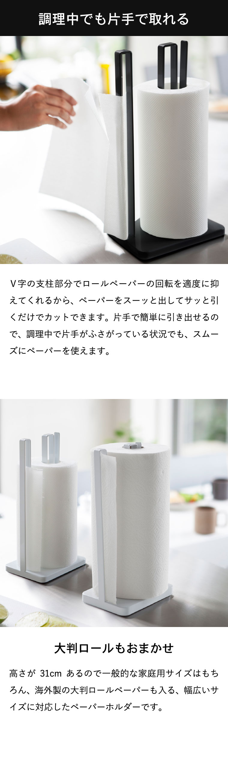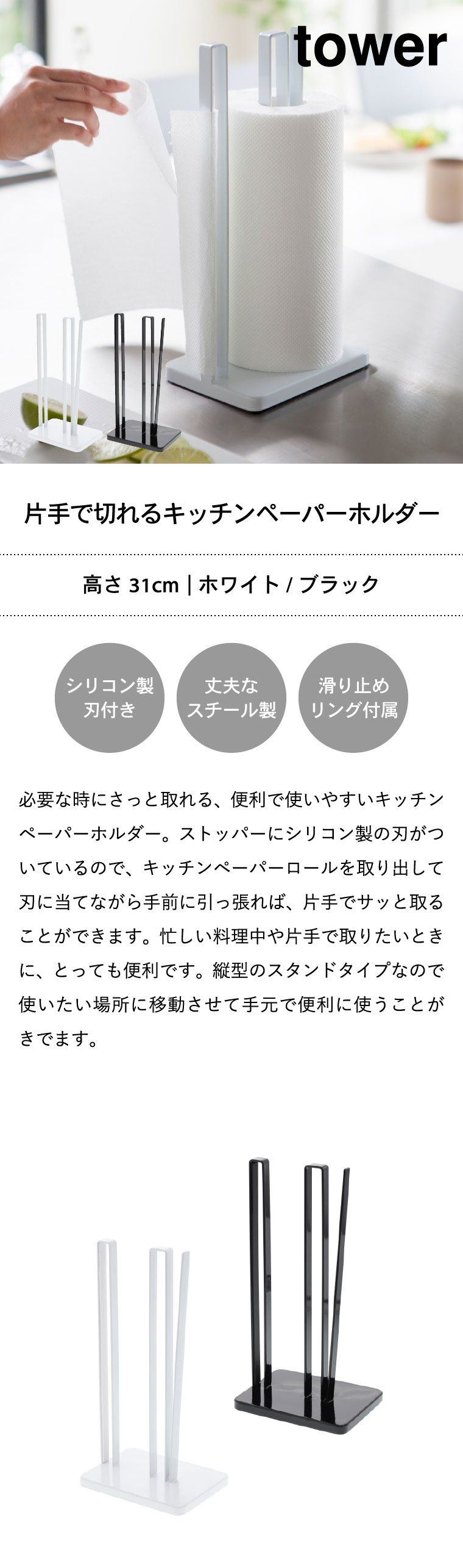 片手で切れるキッチンペーパーホルダー タワー 山崎実業 tower ホワイト/ブラック 3261 3262 タワーシリーズ