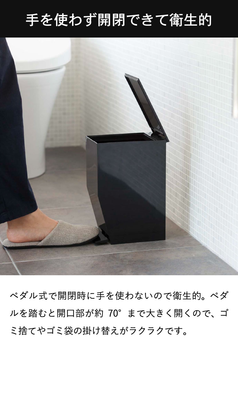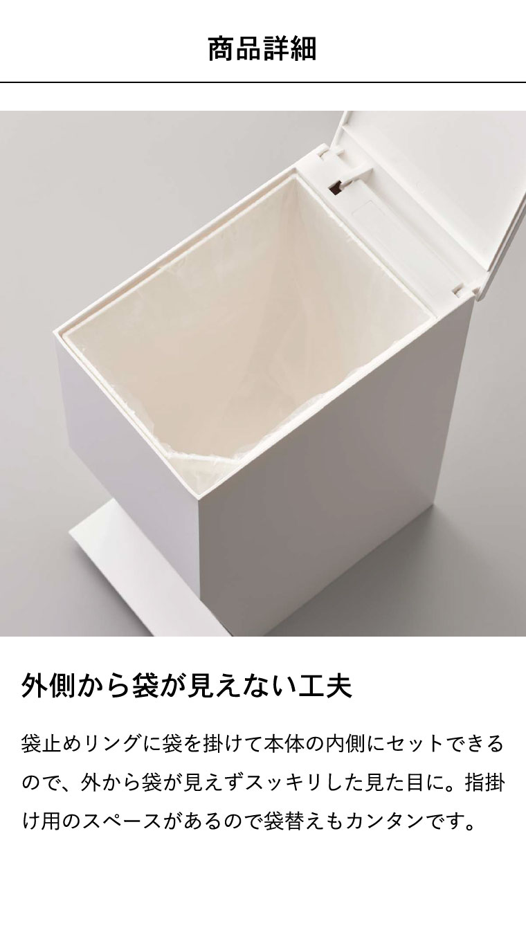 ●素材・材質:本体・蓋・ペダル:ABS樹脂 袋止めリング:ポリプロピレン ロッド:スチール(ユニクロメッキ)