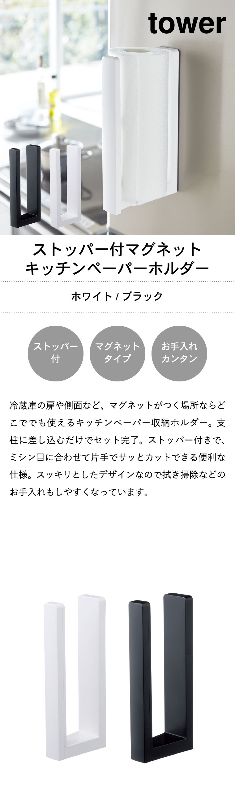 ストッパー付マグネットキッチンペーパーホルダー タワー
