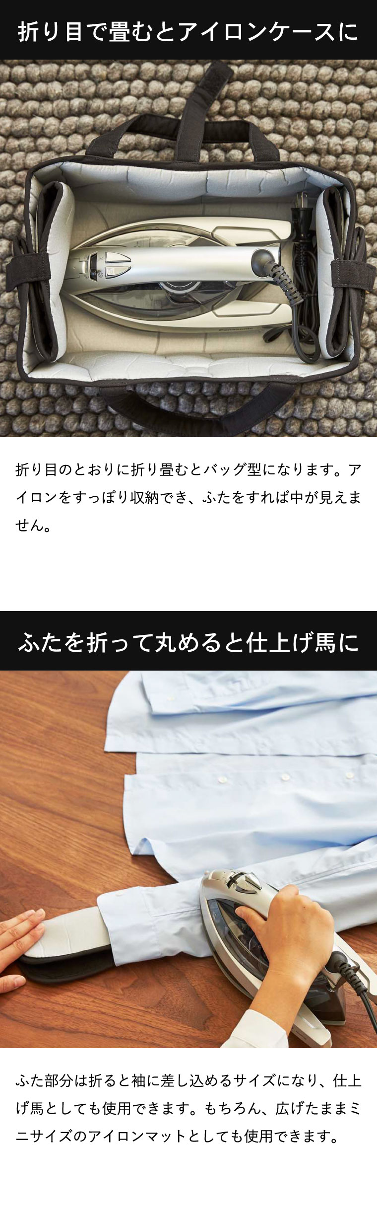 ●対応サイズ:収納可能なアイロン:約W30×D16×H16cm以下