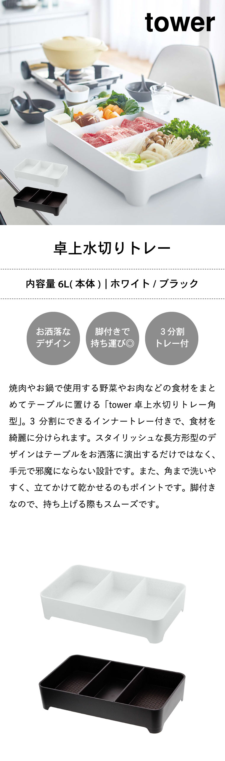 卓上水切りトレー 角型 タワー 山崎実業 tower ホワイト/ブラック 3514 3515 タワーシリーズ