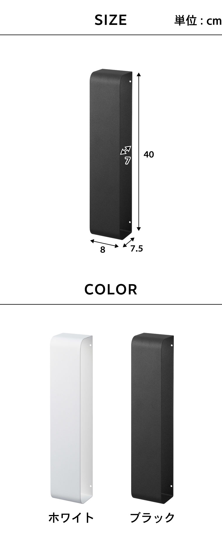 ●対応サイズ:丸めたタオルを約5枚 ●素材・材質:本体:スチール(粉体塗装) ●商品サイズ:(約)横8×奥行き7.5×高さ40cm ●商品重量:(約)840g ●型番:LD-TW K WH/LD-TW K BK ●JANコード:4903208036177 4903208036184