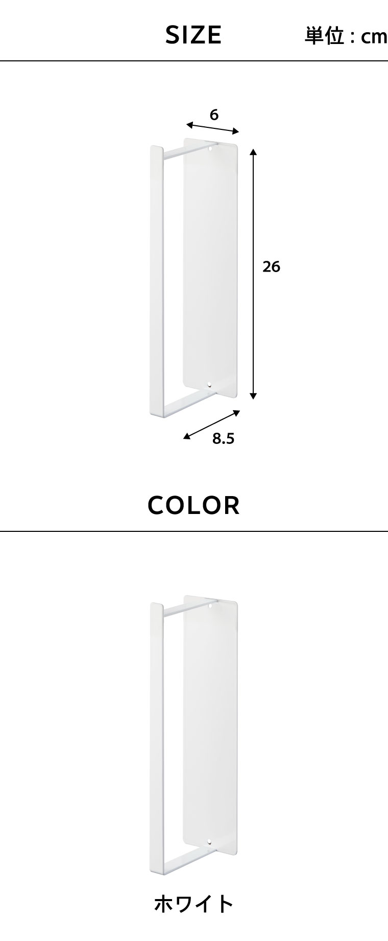 ●素材・材質:本体:スチール(粉体塗装) ●商品サイズ:(約)横6×奥行き8.5×高さ26cm ●商品重量:(約)390g ●型番:LD-TW N S WH ●JANコード:4903208036900