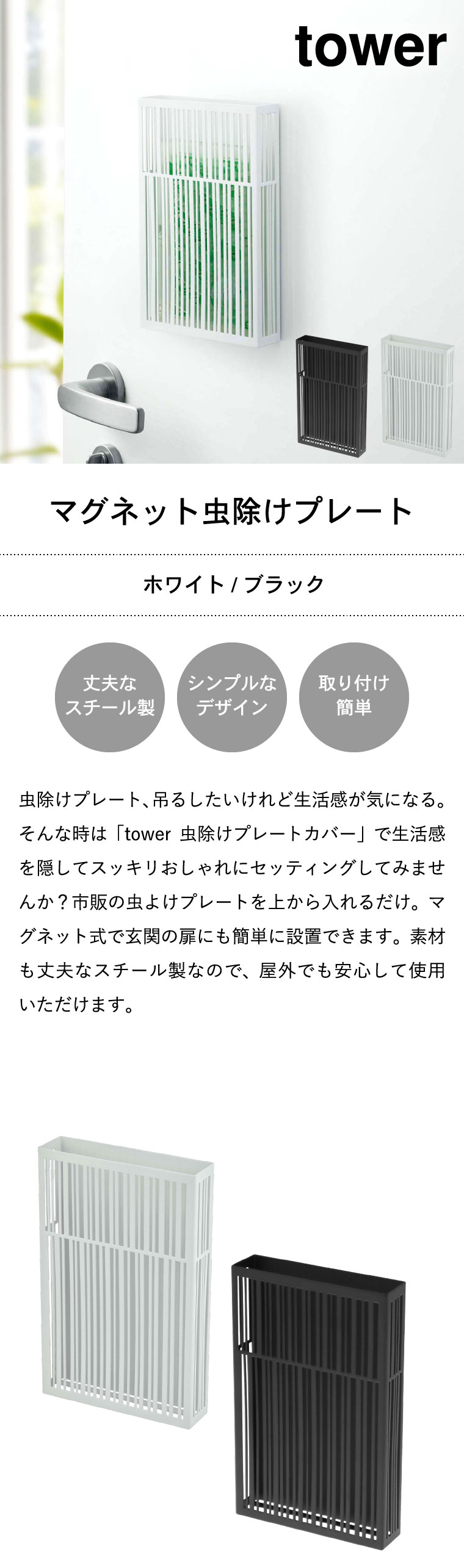 マグネット虫除けプレートカバー タワー 山崎実業 tower ホワイト/ブラック 3874 3875 タワーシリーズ マグネット