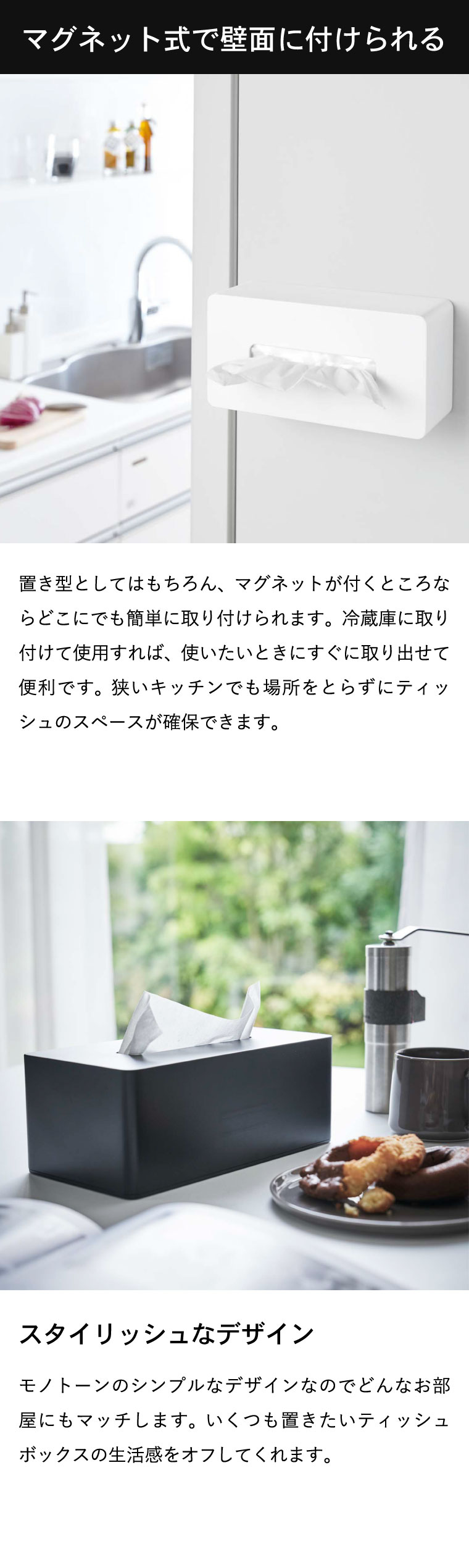 マグネットティッシュケース タワー 山崎実業 tower ティッシュケース ホワイト/ブラック 4001 4002 タワーシリーズ マグネット