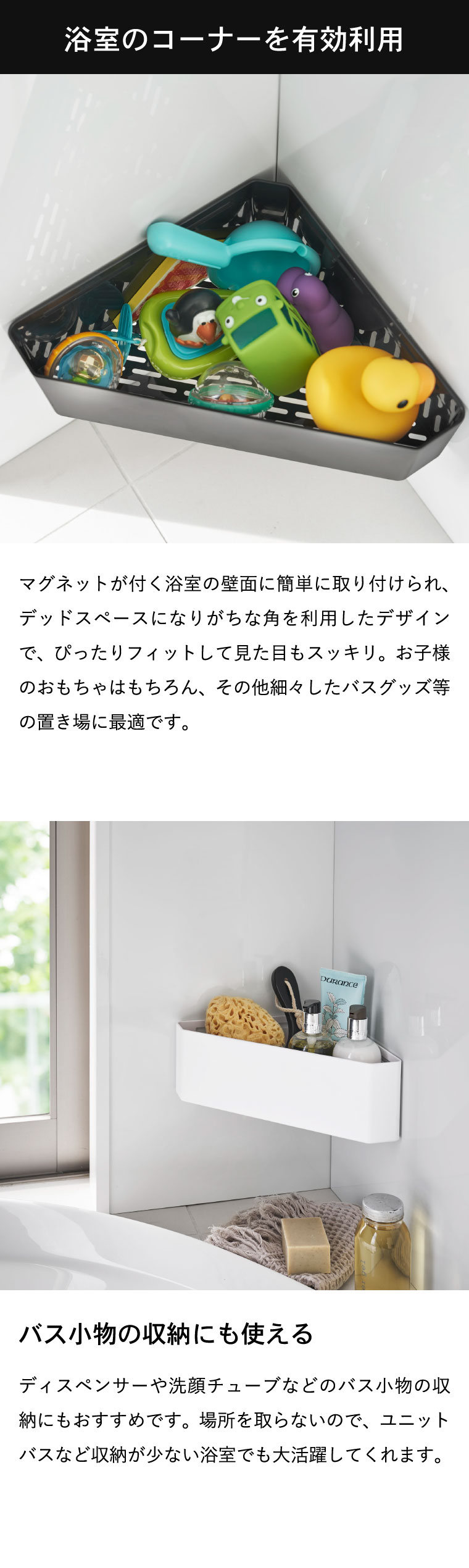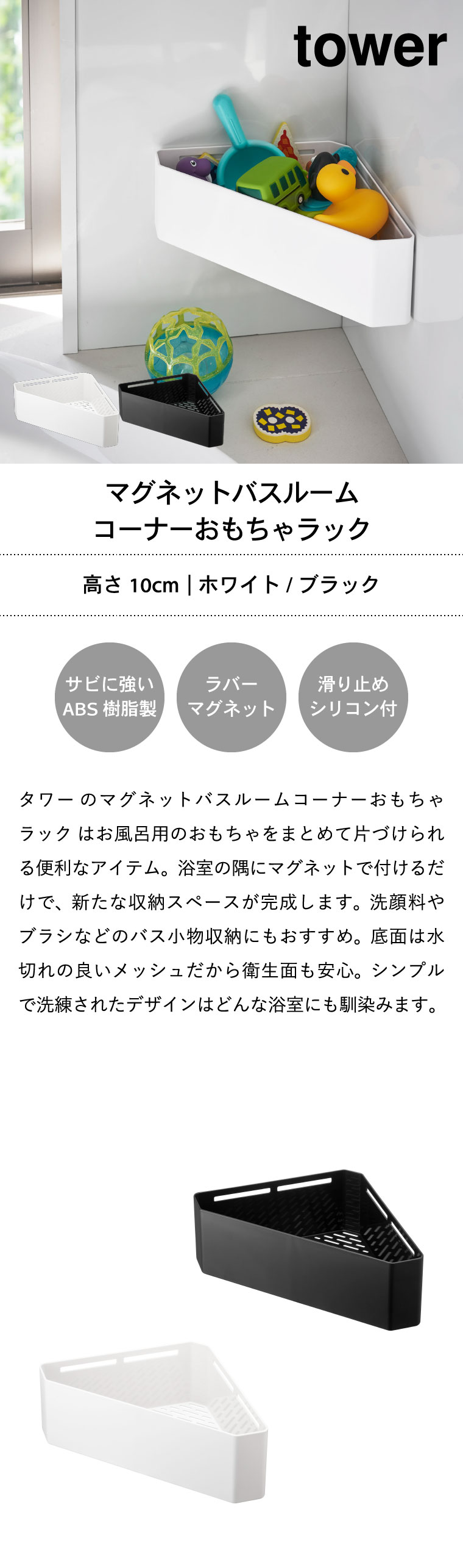 マグネットバスルームコーナーおもちゃラック タワー 山崎実業 tower ホワイト/ブラック 4264 4265 タワーシリーズ マグネット