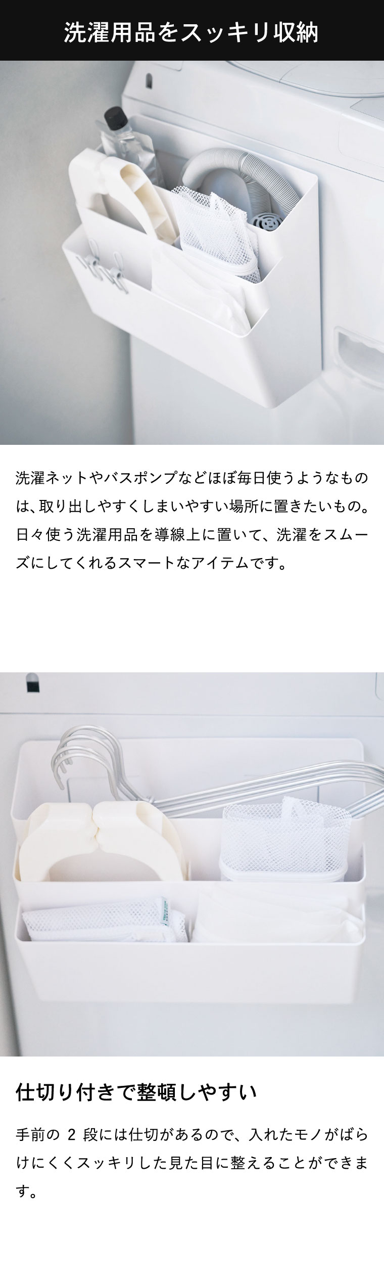 ●耐荷重:本体:約2kg(上段ポケット約1kg・中下段ポケット各約500g) フック:各約250g