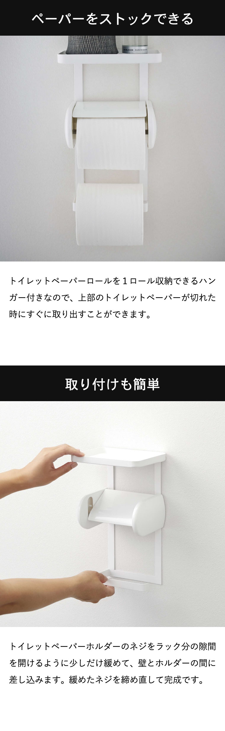 トイレットペーパーホルダー上ラック 2段 タワー