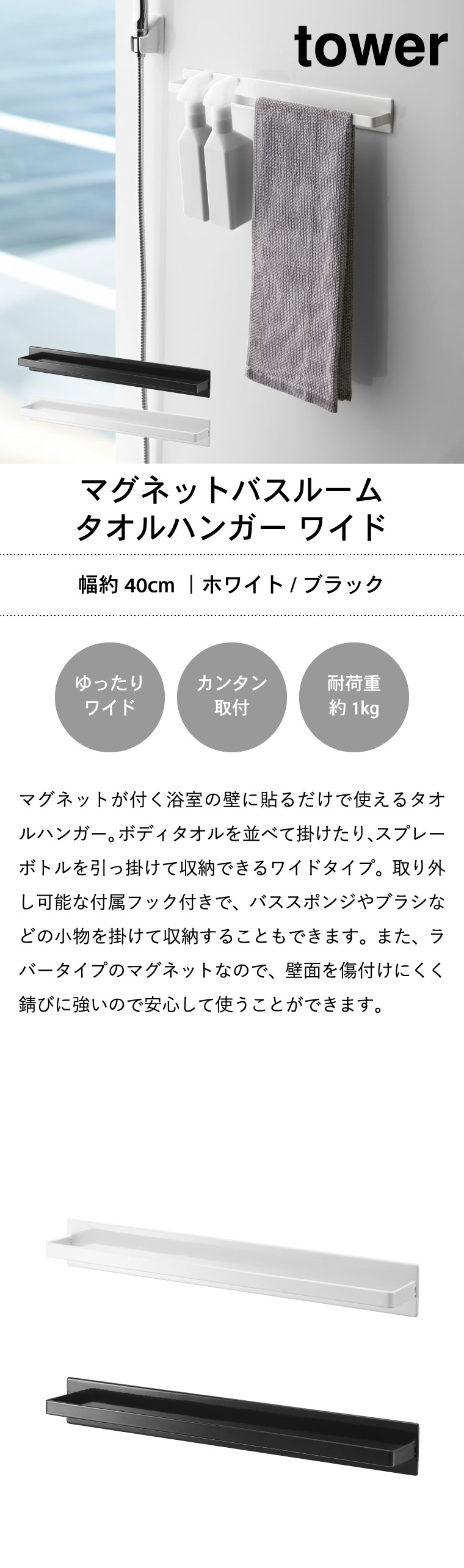 マグネットバスルームタオルハンガー タワーワイド