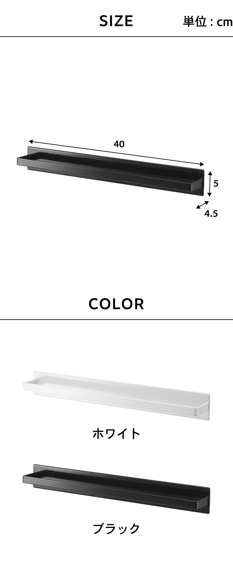 ●素材・材質:本体:スチール(ユニクロメッキ+粉体塗装) マグネット 滑り止め:シリコーン ●商品サイズ:(約)横40×奥行き4.5×高さ5cm ●商品重量:(約)550g ●JANコード:4903208045964 4903208045971