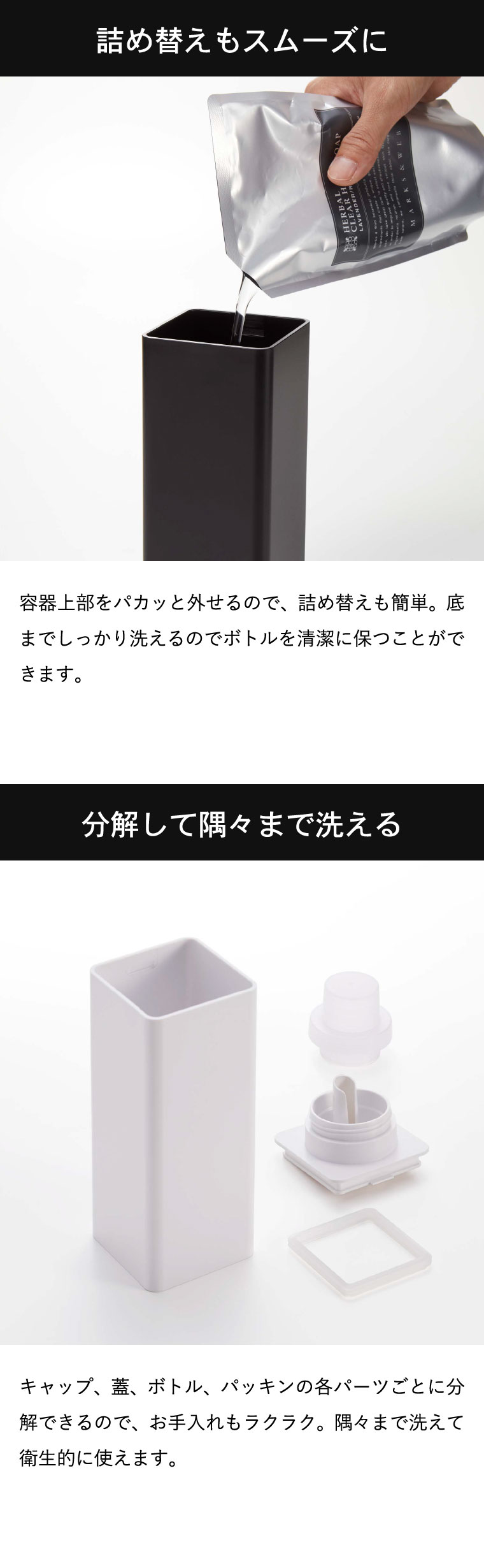 ●素材・材質:容器・ノズル:AS樹脂 マグネット キャップ:ポリプロピレン パッキン・滑り止め:シリコーン