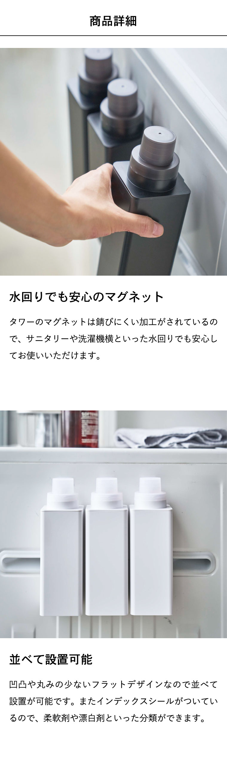 ●素材・材質:容器・ノズル:AS樹脂 マグネット キャップ:ポリプロピレン パッキン・滑り止め:シリコーン ●商品サイズ:(約)横7×奥行き7.2×高さ22cm ●商品重量:(約)290g ●JANコード:4903208048521 4903208048538