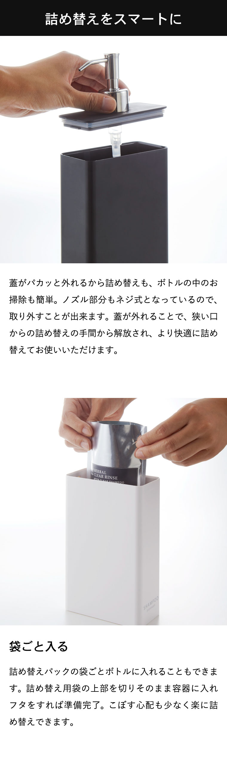 ●対応サイズ:詰め替え用パック:400ml 以内のもの