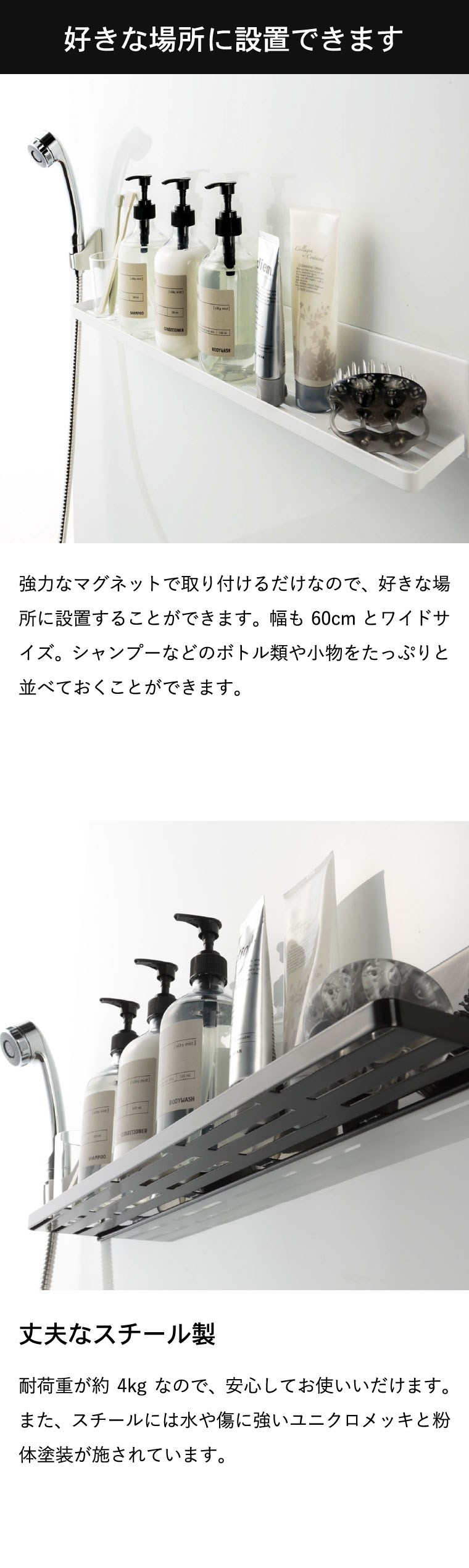 ●素材・材質:本体:スチール(ユニクロメッキ+粉体塗装)マグネット 滑り止め:シリコーン ●商品サイズ:(約)横60×奥行き8.5×高さ8cm ●商品重量:(約)1300g ●JANコード:4903208048583 4903208048590