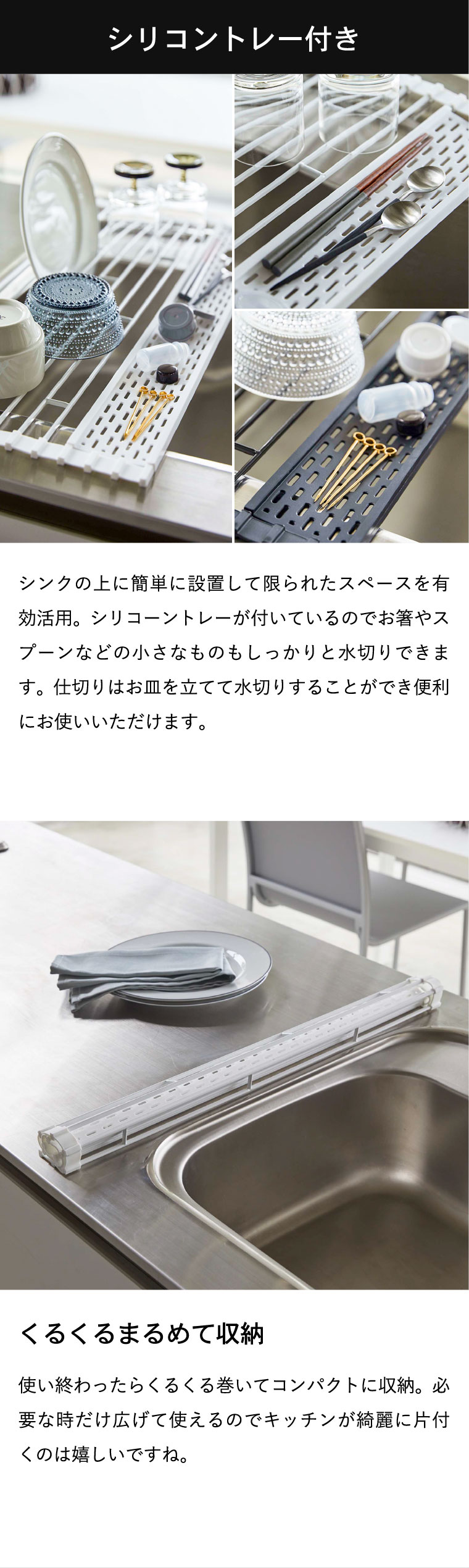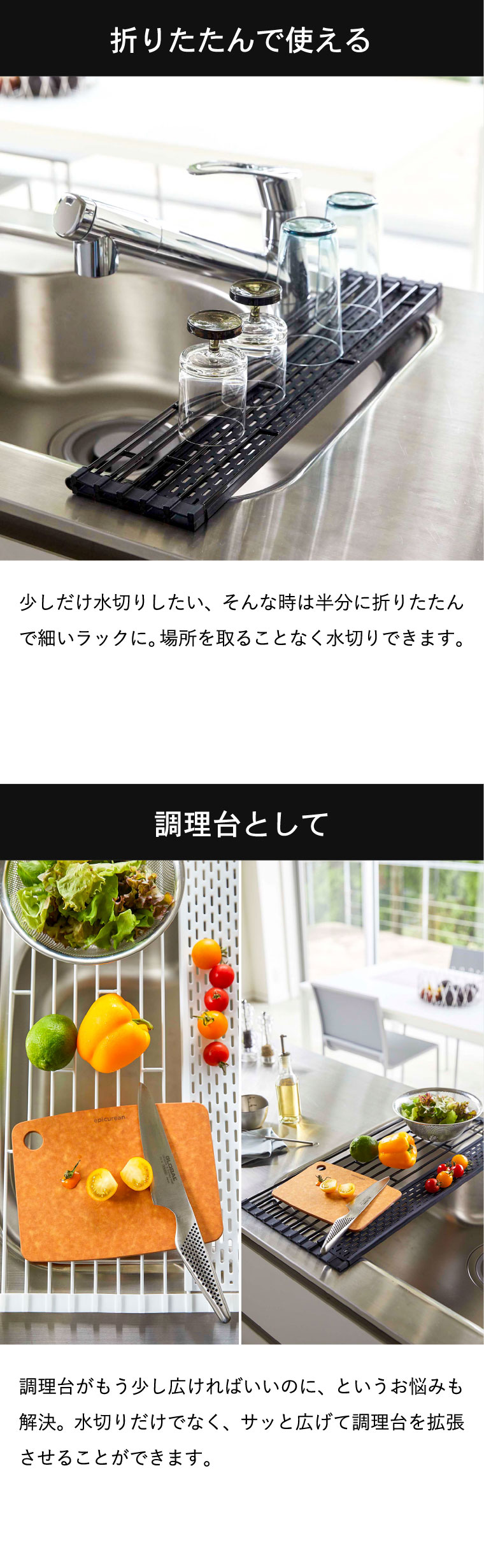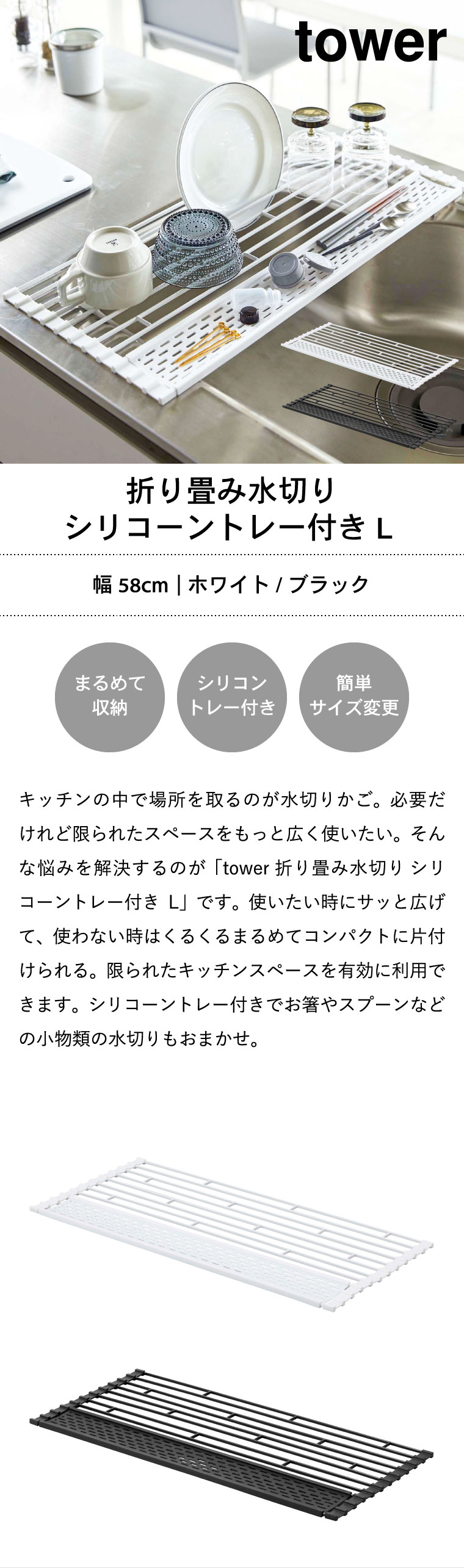 折り畳み水切り シリコーントレー付き L タワー 山崎実業 tower 折りたたみ水切り ホワイト/ブラック 5054 5055 タワーシリーズ