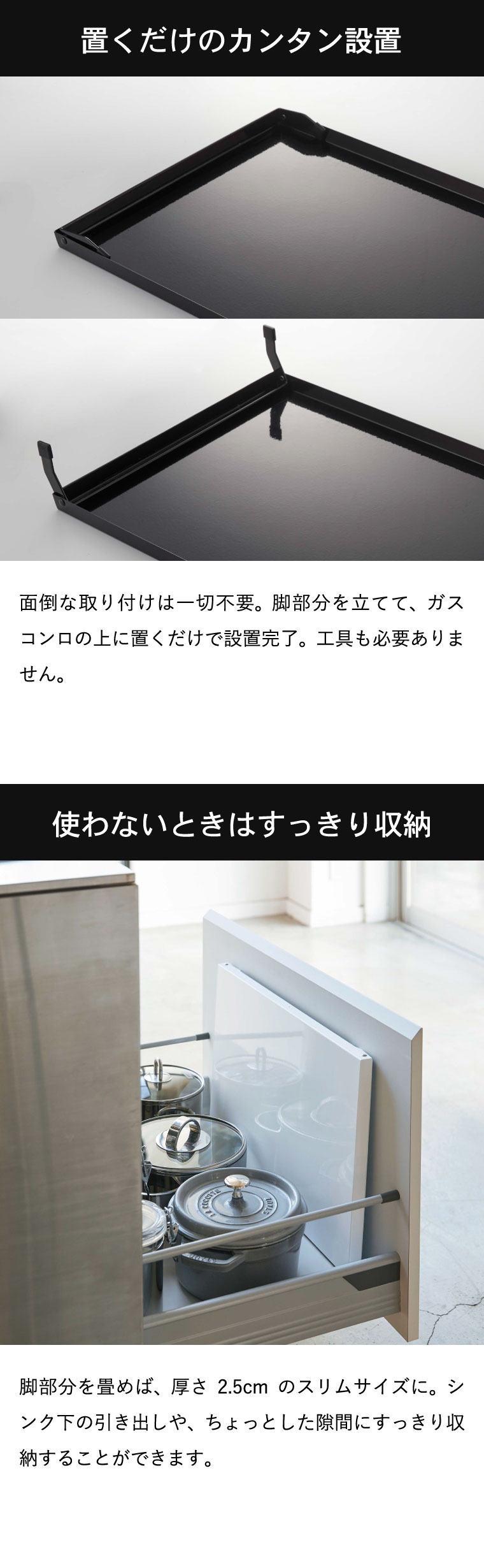 ●対応サイズ:シンクの天板から高さ約7cm以下のビルトインガスコンロ・据え置きガスコンロ(五徳を含む) ■天板サイズ 約W51.5×D32.5cm