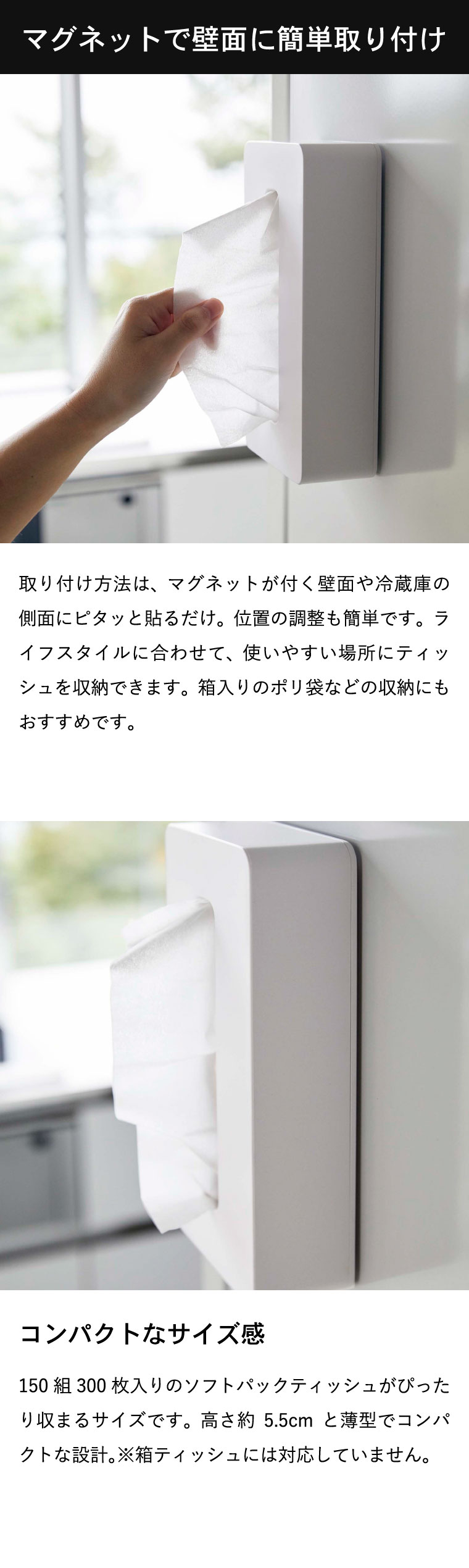 ※内寸以下のティッシュに対応、内寸より厚みのあるティッシュの場合は、収まりきらない場合や使い始めの数枚は取り出しにくい場合がございます。 ※箱ティッシュは対応していません。
