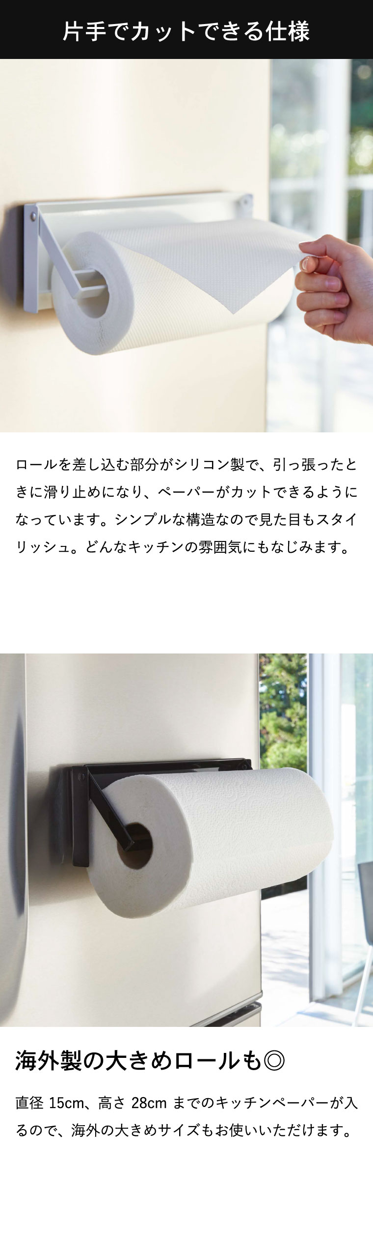 ●対応サイズ:直径約15cm、高さ約28cmまでのキッチンペーパーロール