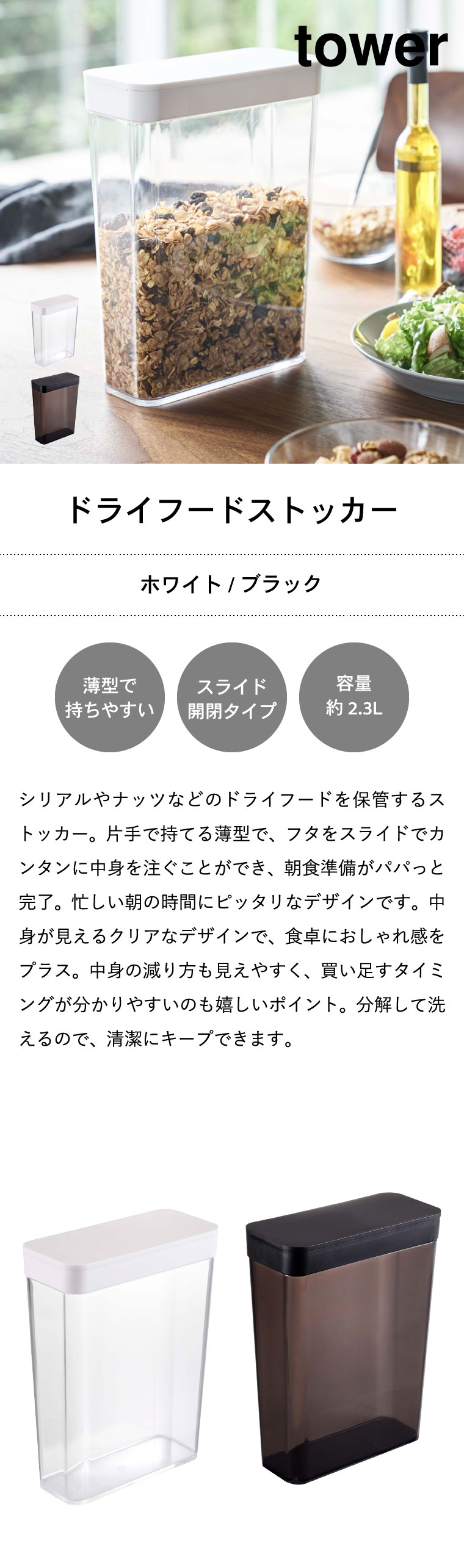ドライフードストッカー タワー 山崎実業 tower ホワイト/ブラック 4952 4953 タワーシリーズ