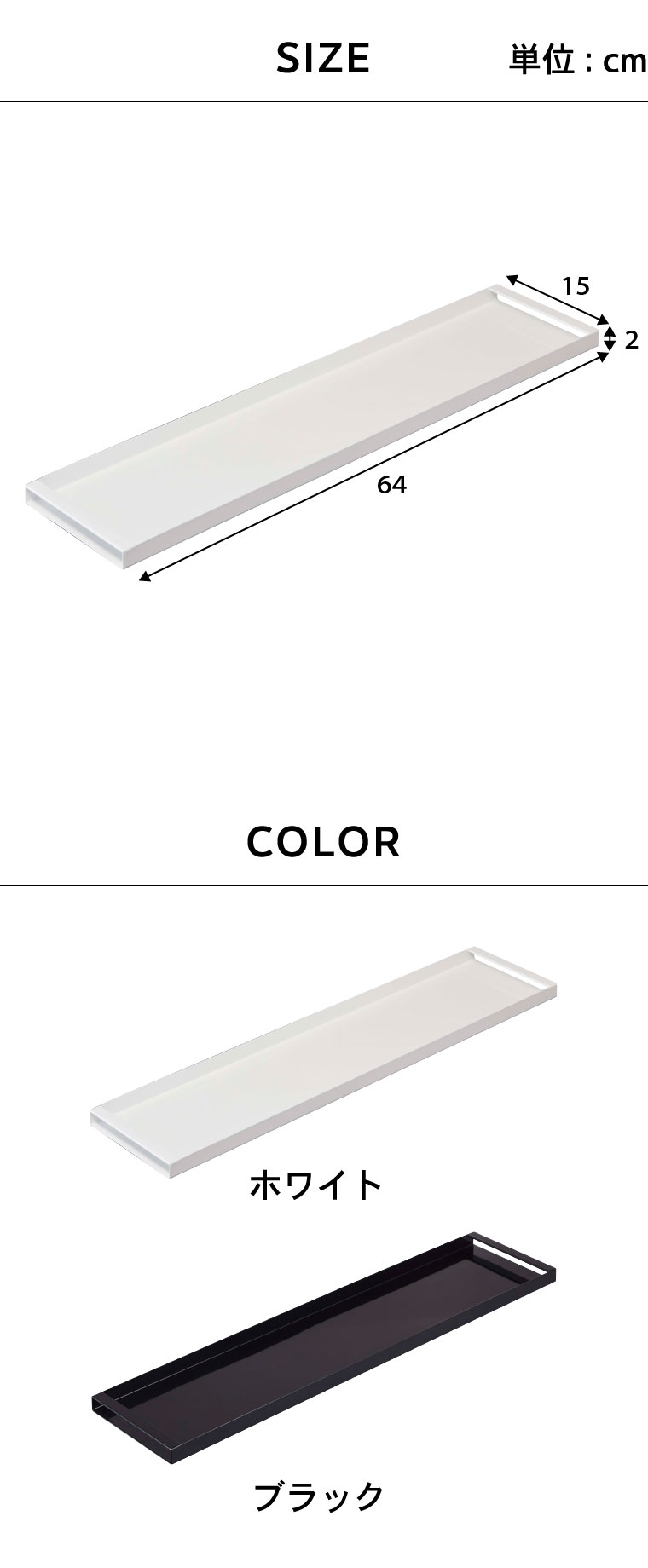 ●商品サイズ:約64X15X2cm ●商品重量:約1000g ●内寸サイズ:裏面:約W61×D14.5cm ●素材・材質:本体:スチール(粉体塗装) ●付属品:緩衝材×4 ●耐荷重:約5kg ●対応サイズ:奥行約64cm・縁の幅約1.5cm以上の洗濯機用防水パン ●JANコード:4903208049665 4903208049672