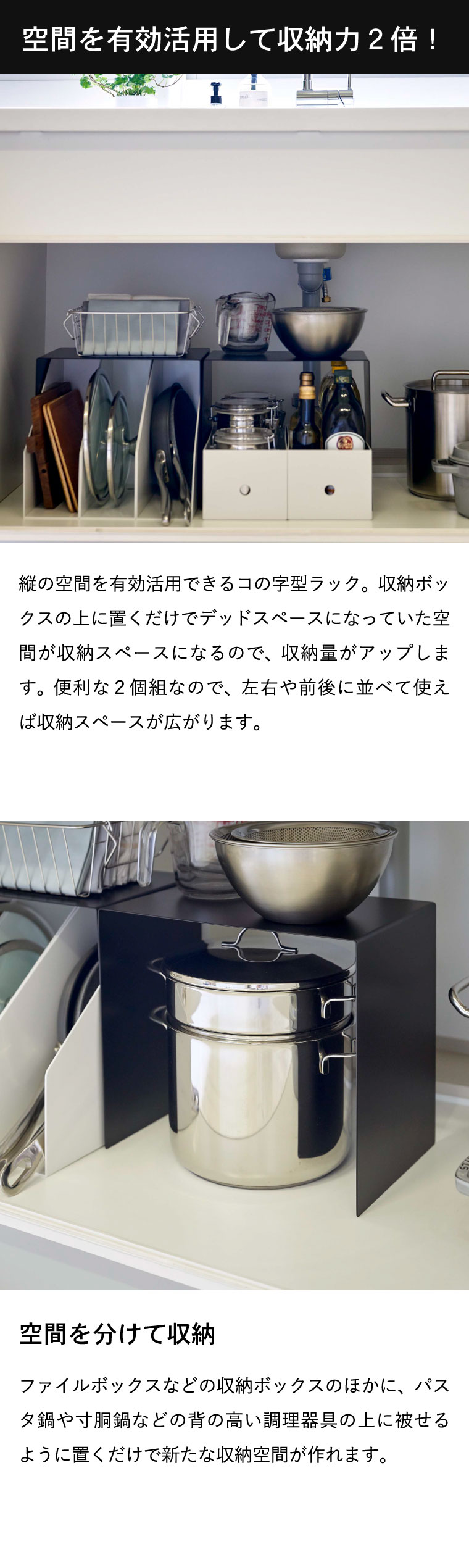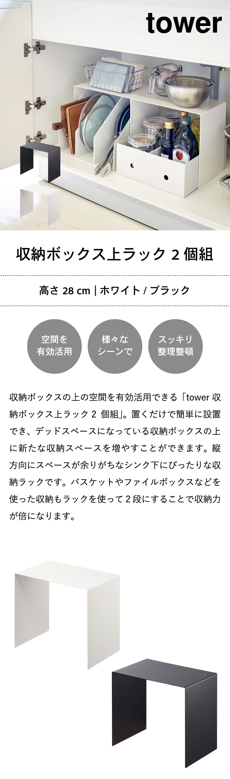 収納ボックス上ラック 2個組 タワー 山崎実業 tower コの字ラック ホワイト/ブラック 5037 5038 タワーシリーズ