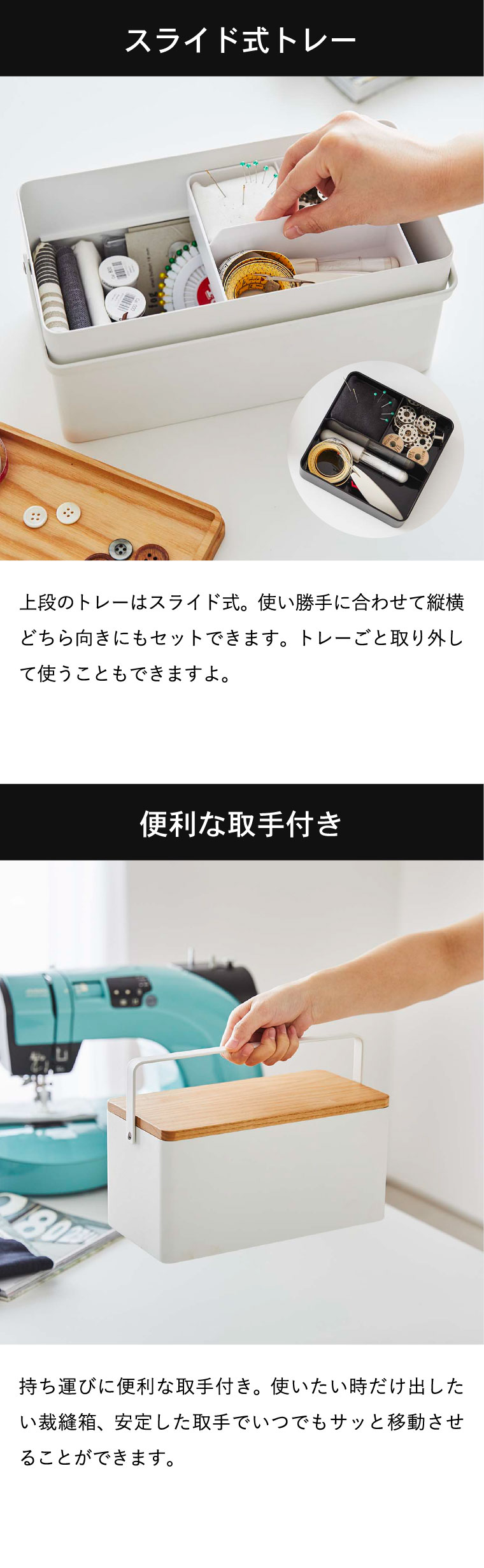 ●対応サイズ:■商品サイズ 容器:約W27×D14×H12cm(取っ手含む) 蓋:約W26×D13×H2cm トレー:約W12.5×D12.5×H5cm 針山:約W6×D6×H4cm