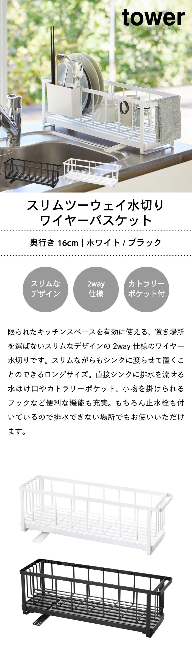 スリムツーウェイ水切りワイヤーバスケット タワー 山崎実業 tower 水切りラック ホワイト/ブラック 5068 5069 タワーシリーズ