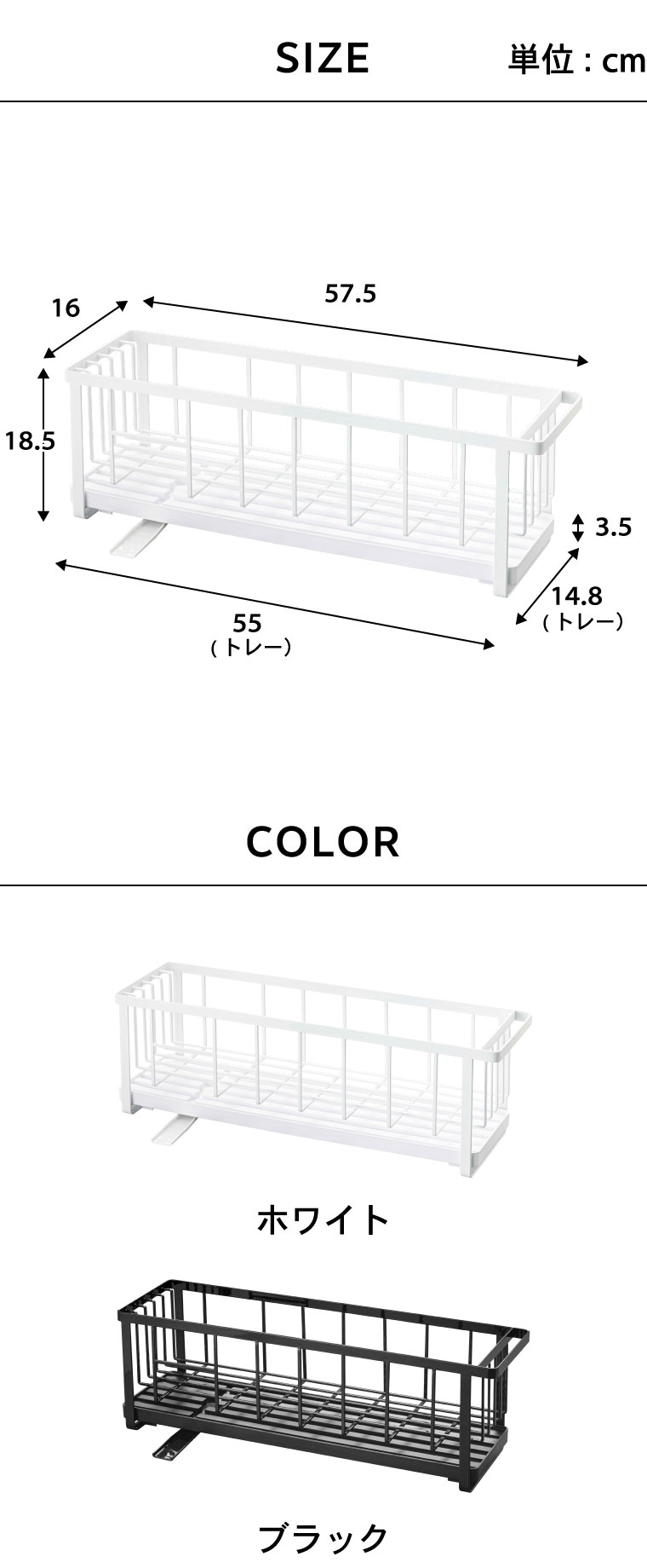 ●内寸サイズ:ワイヤーバスケット:約W54.5×D15.4×H11.5cm ワイヤーバスケットのスリット幅:約2cm ハンドル部:約W15.5×D2cm