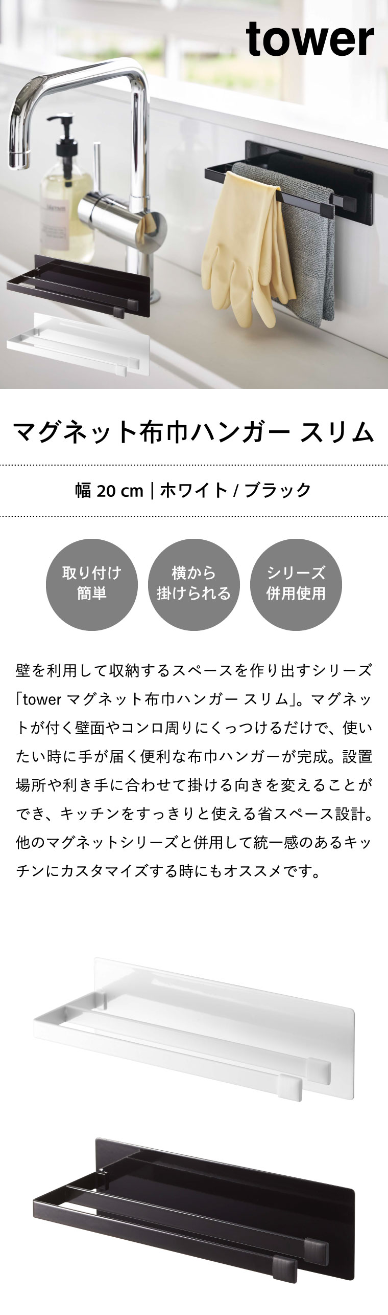 マグネット布巾ハンガー スリム タワー 山崎実業 tower ホワイト/ブラック 5142 5143 タワーシリーズ