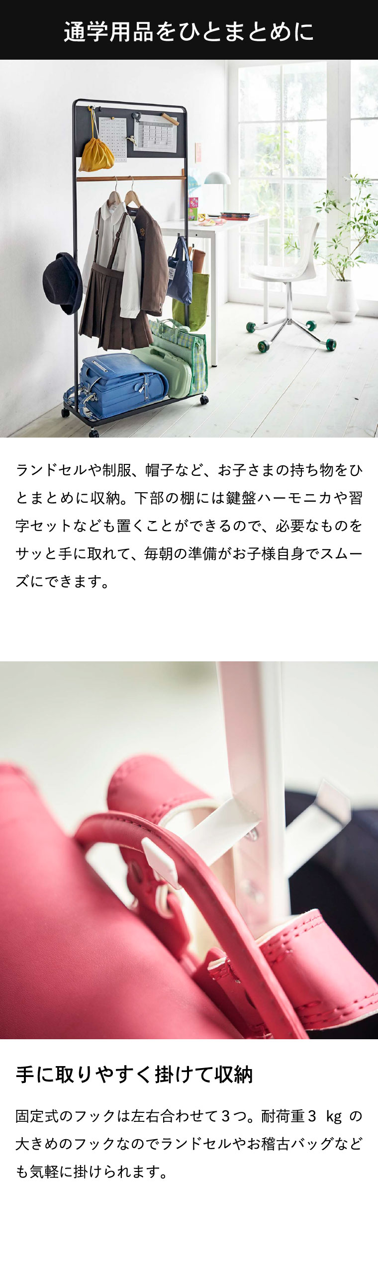 リビング や 寝室 がスッキリ!使わない時は収納できる ドアハンガー や 子供部屋にぴったりの パネル付きキッズハンガーラック が豊富です