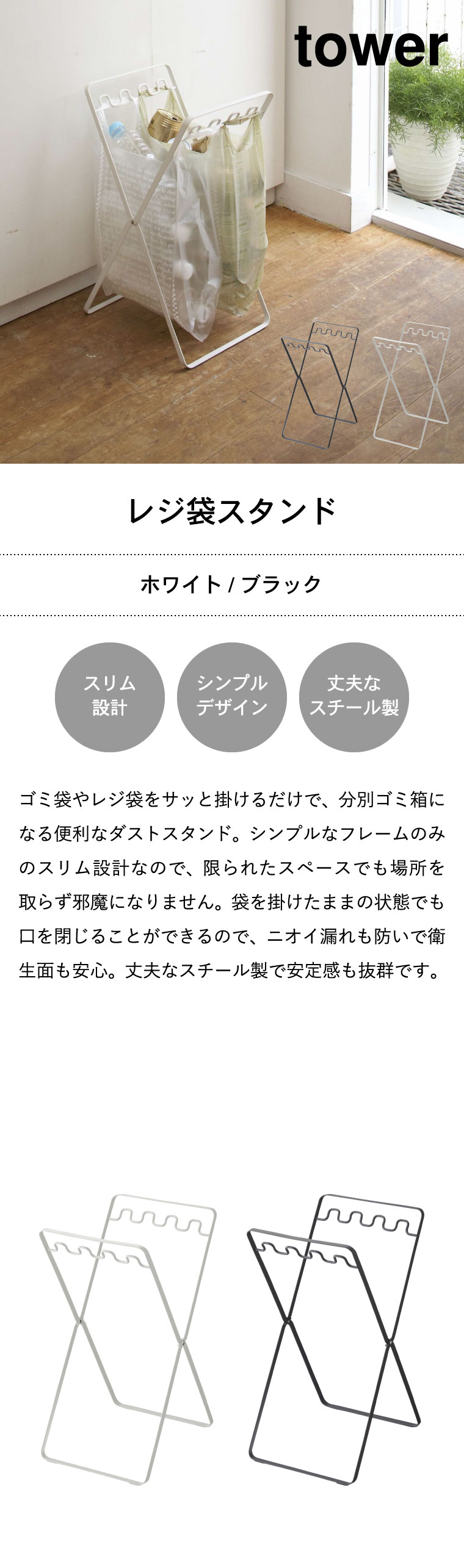 レジ袋スタンド タワー 山崎実業 tower ホワイト/ブラック 6340 6341 タワーシリーズ